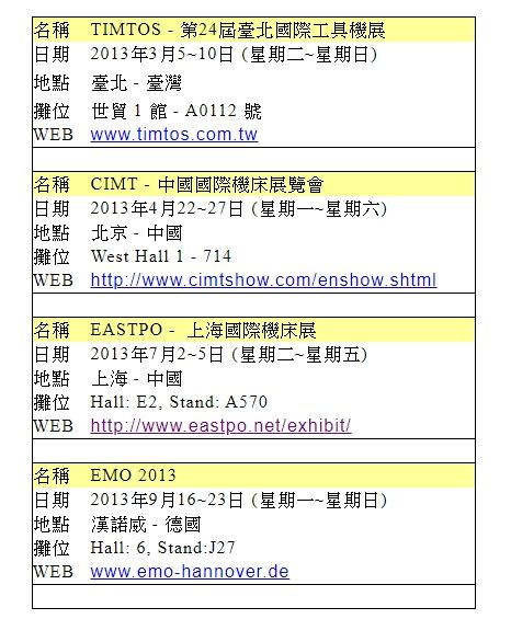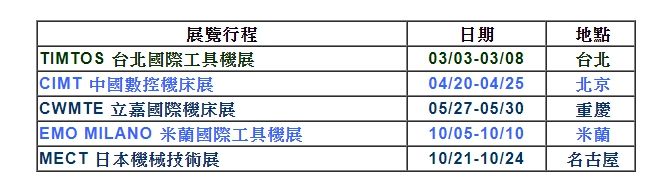 2015 展覽行程 (TIMTOS, CIMT, CWMTE, EMO, MECT)