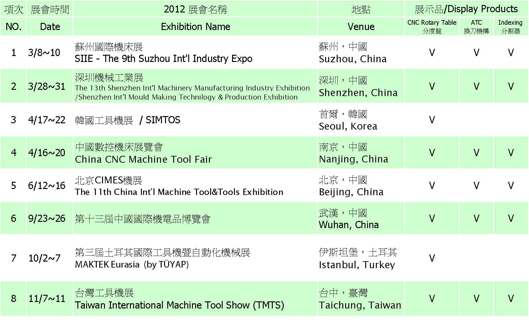(SIIE,深圳機械工具展,SIMTOS,中國數控機床展覽會,CIMES,中國國際機電品博覽會,MAKTEK,TMTS)